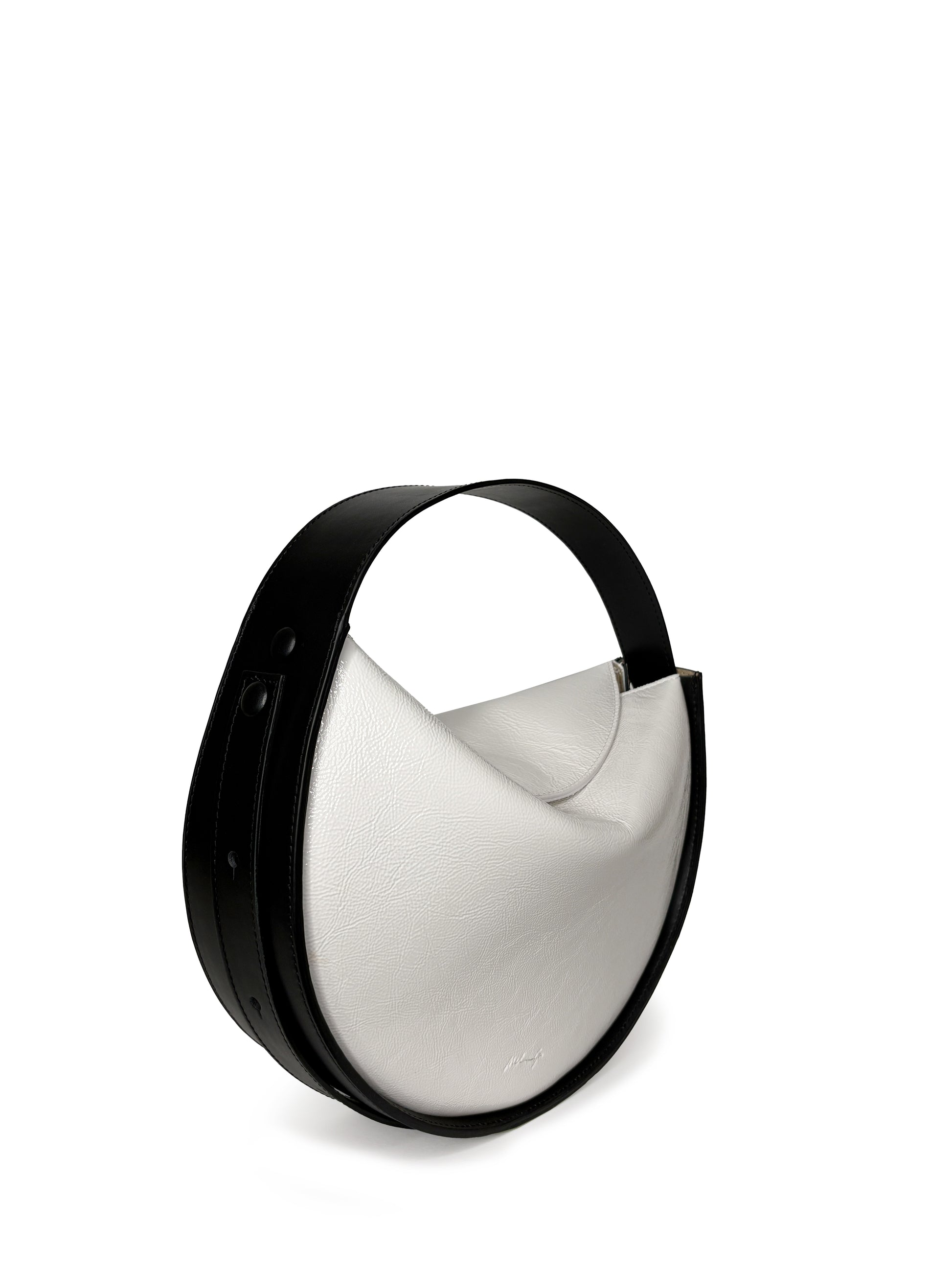 Una borsa, tre modi di indossarla. Alma si adatta alla giornata con naturalezza: può essere portata a spalla, a mano o a tracolla. Aperta è disinvolta e quotidiana, chiusa con il bottone interno prende la sua forma raccolta a “raviolo”, per un'occasione più intima o sofisticata.