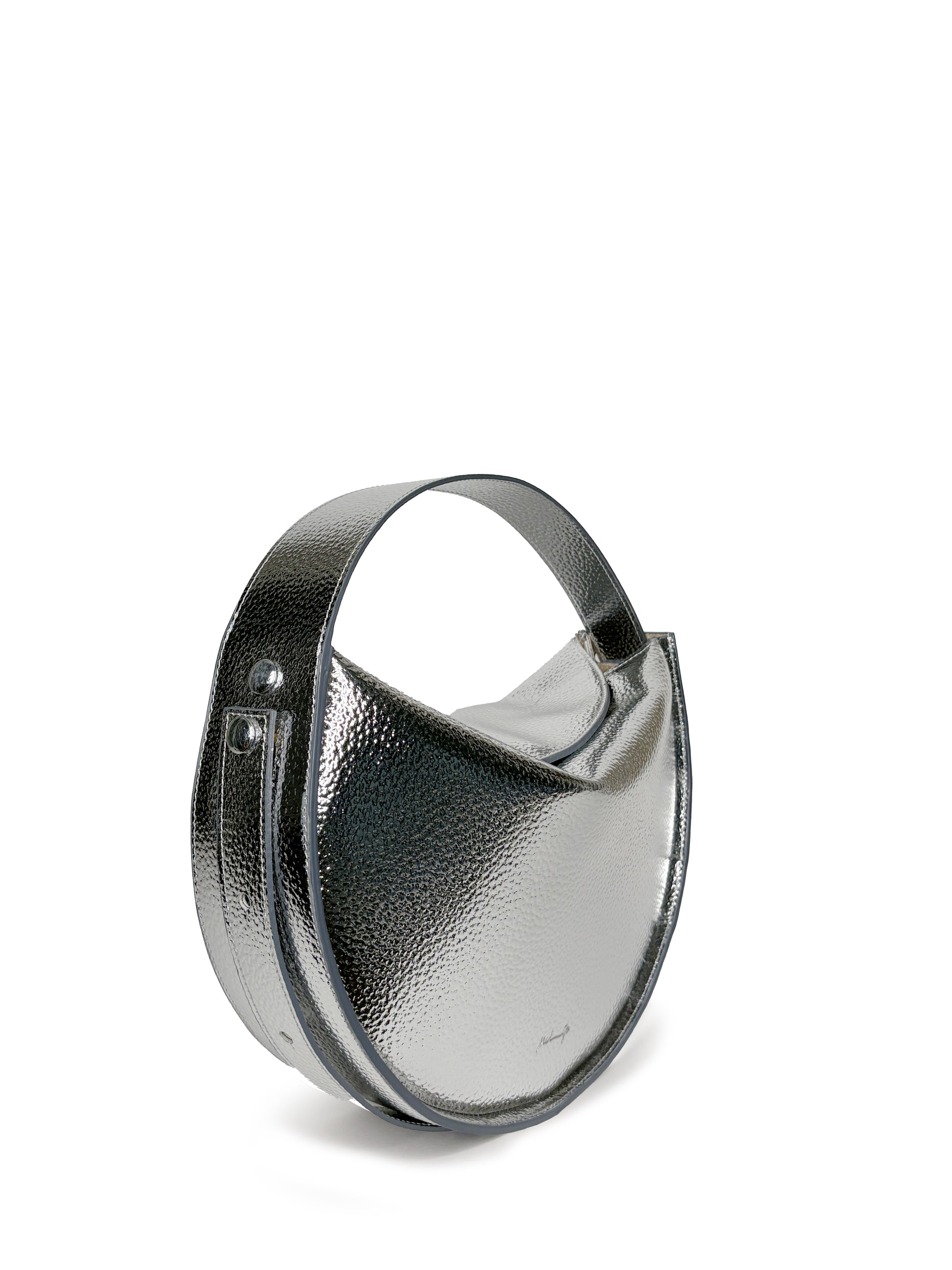 Una borsa, tre modi di indossarla. Alma si adatta alla giornata con naturalezza: può essere portata a spalla, a mano o a tracolla. Aperta è disinvolta e quotidiana, chiusa con il bottone interno prende la sua forma raccolta a “raviolo”, per un'occasione più intima o sofisticata.