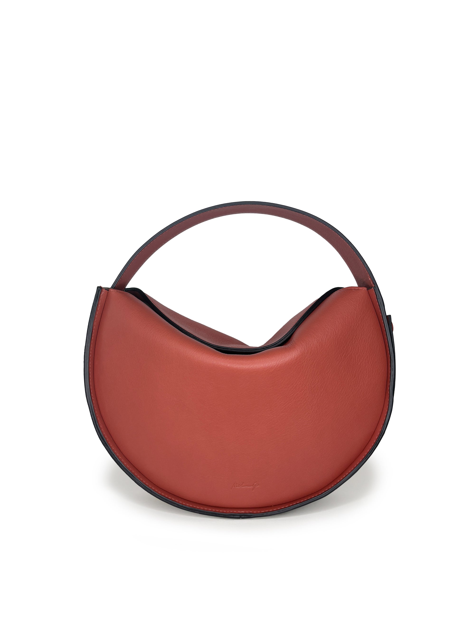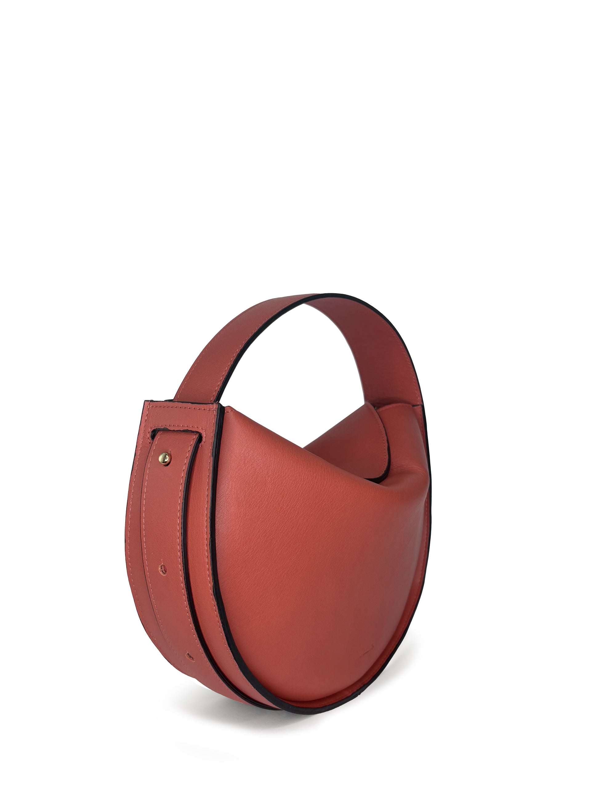 Una borsa, tre modi di indossarla. Alma si adatta alla giornata con naturalezza: può essere portata a spalla, a mano o a tracolla. Aperta è disinvolta e quotidiana, chiusa con il bottone interno prende la sua forma raccolta a “raviolo”, per un'occasione più intima o sofisticata.