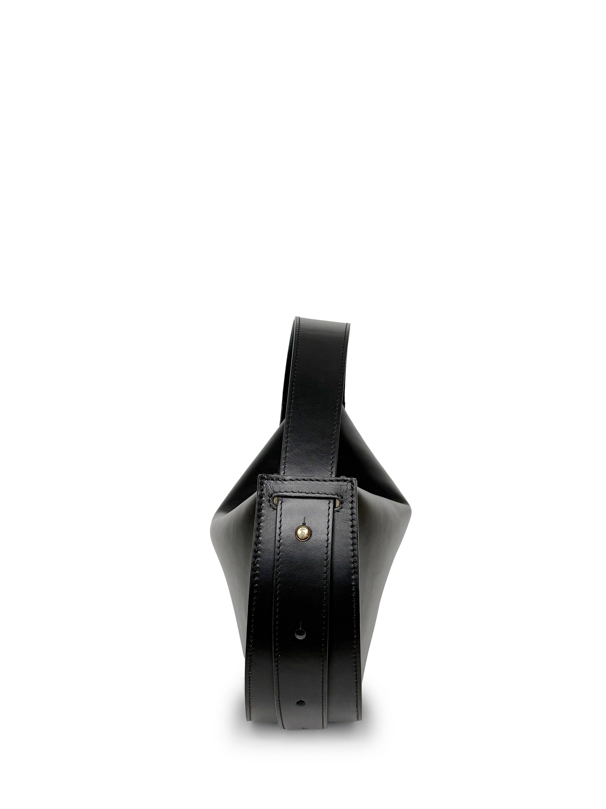 Una borsa, tre modi di indossarla. Alma si adatta alla giornata con naturalezza: può essere portata a spalla, a mano o a tracolla. Aperta è disinvolta e quotidiana, chiusa con il bottone interno prende la sua forma raccolta a “raviolo”, per un'occasione più intima o sofisticata.