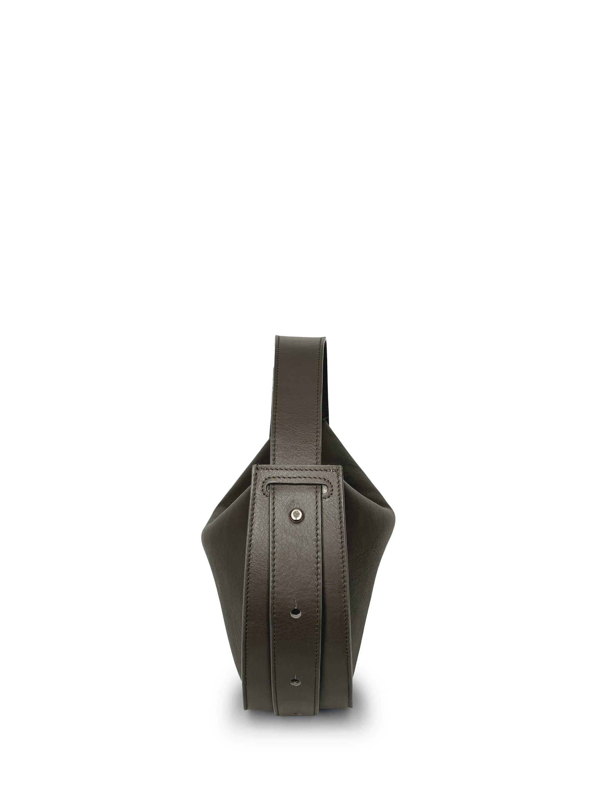 Una borsa, tre modi di indossarla. Alma si adatta alla giornata con naturalezza: può essere portata a spalla, a mano o a tracolla. Aperta è disinvolta e quotidiana, chiusa con il bottone interno prende la sua forma raccolta a “raviolo”, per un'occasione più intima o sofisticata.