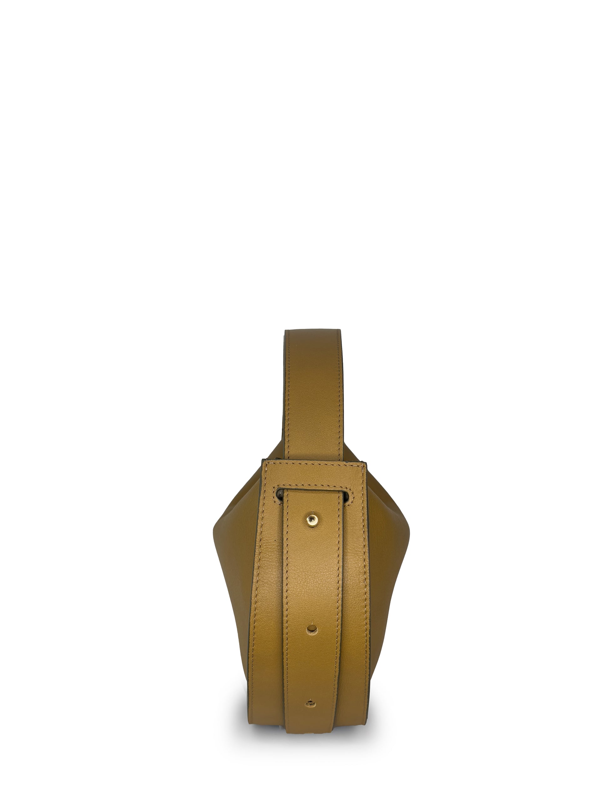 Una borsa, tre modi di indossarla. Alma si adatta alla giornata con naturalezza: può essere portata a spalla, a mano o a tracolla. Aperta è disinvolta e quotidiana, chiusa con il bottone interno prende la sua forma raccolta a “raviolo”, per un'occasione più intima o sofisticata.