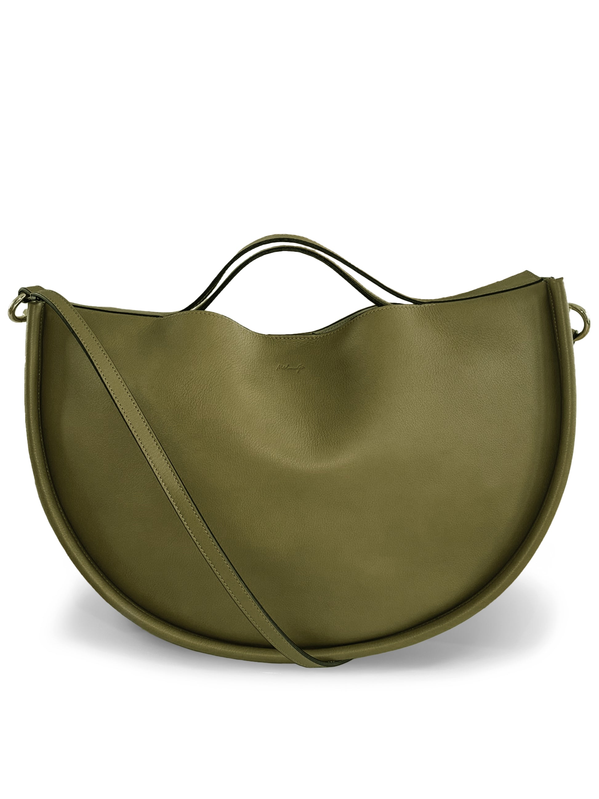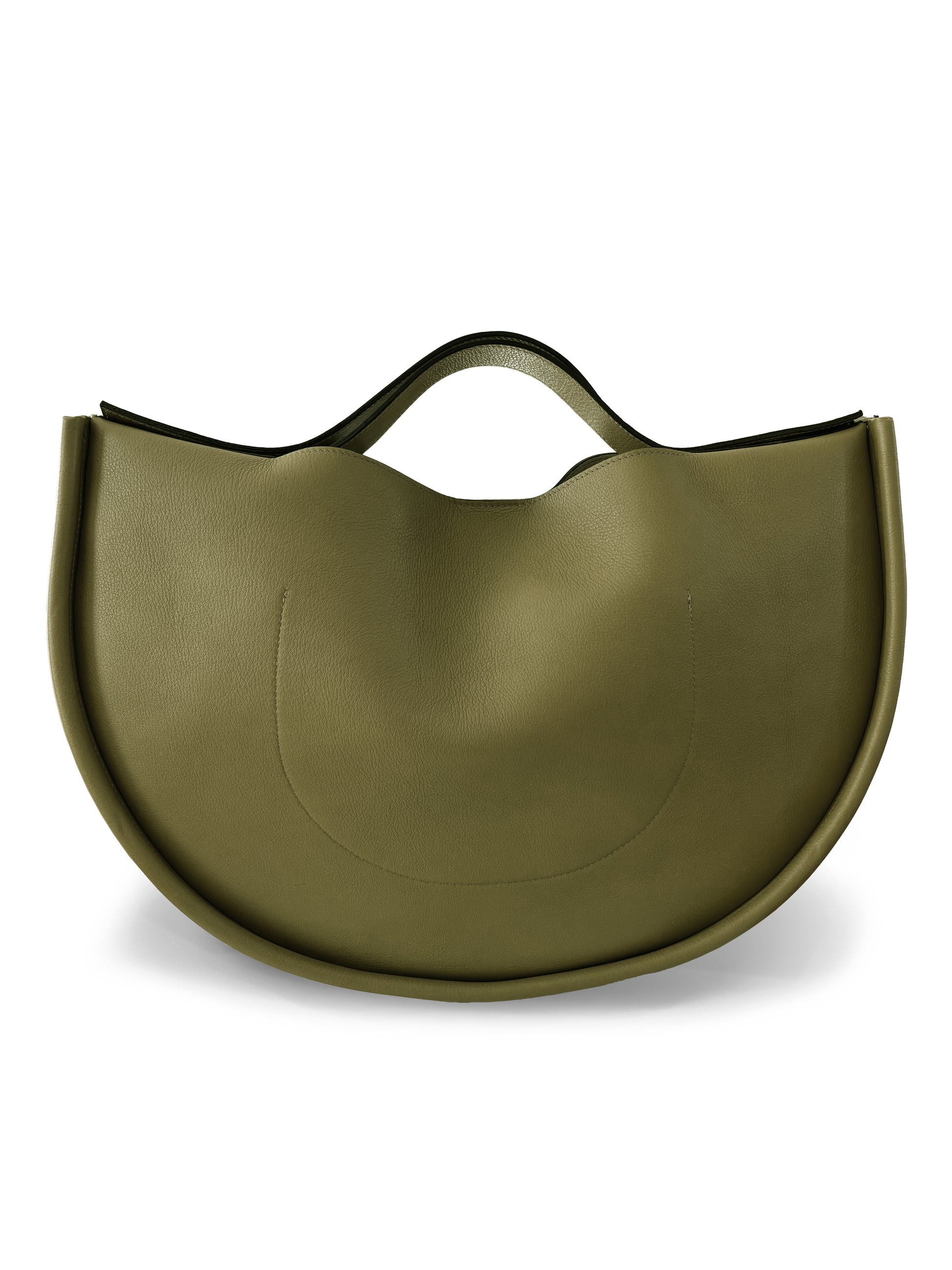 Egle è una borsa di grandi dimensioni dal carattere deciso. Ideale da portare a mano, esprime al meglio la sua forza scultorea in questa modalità.