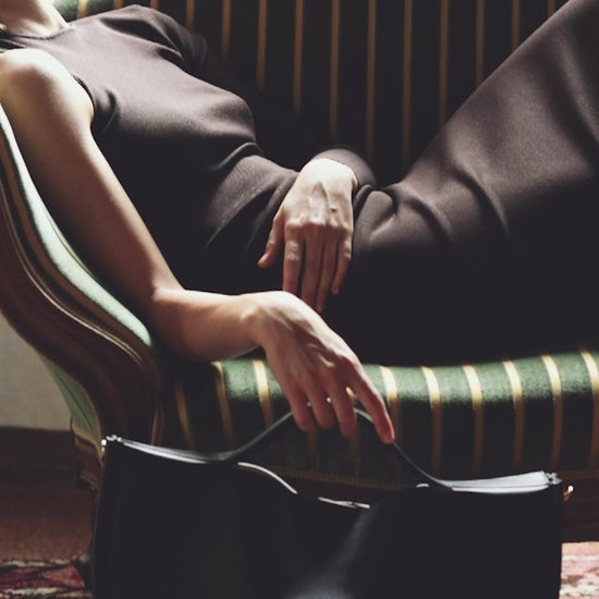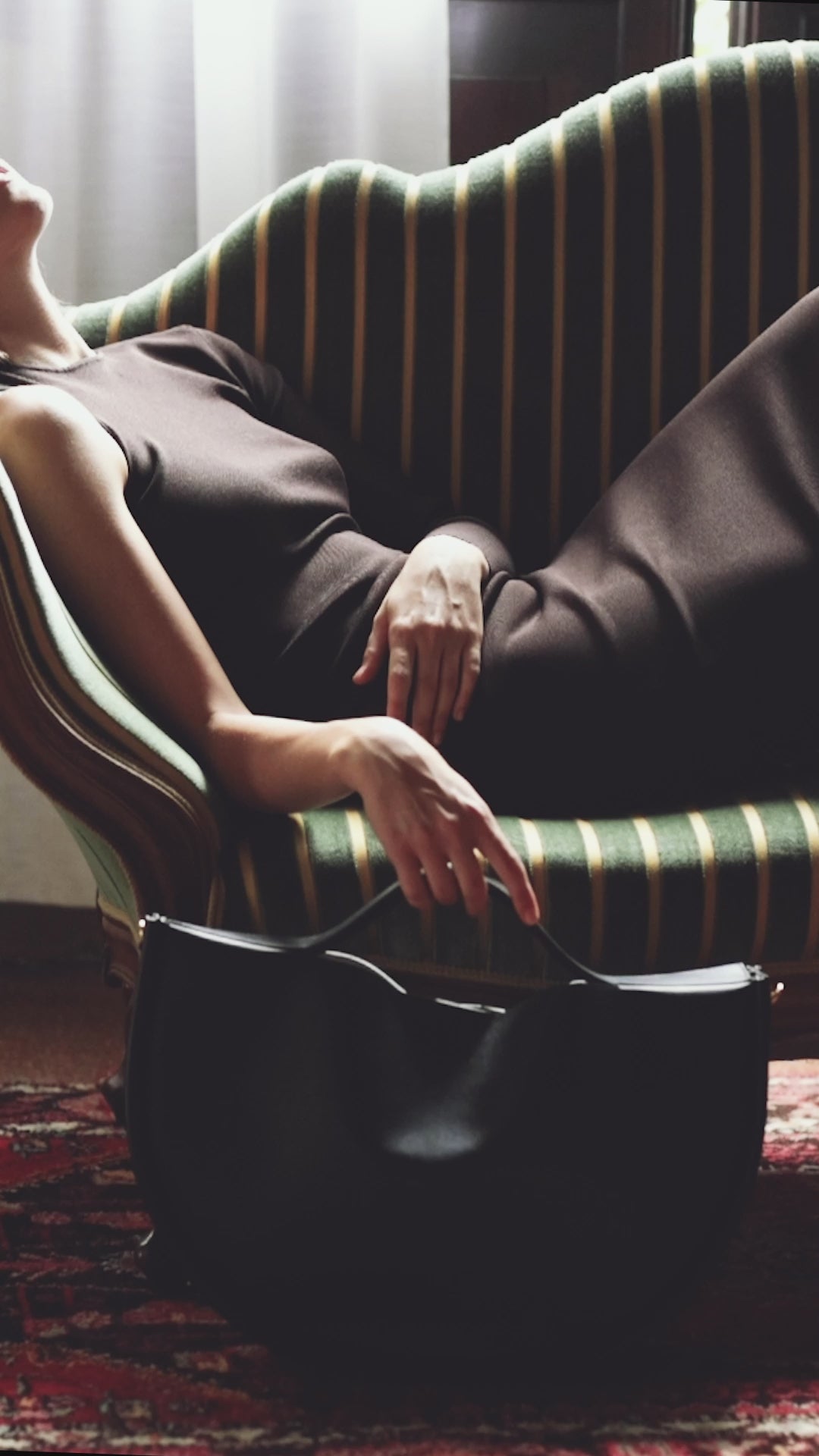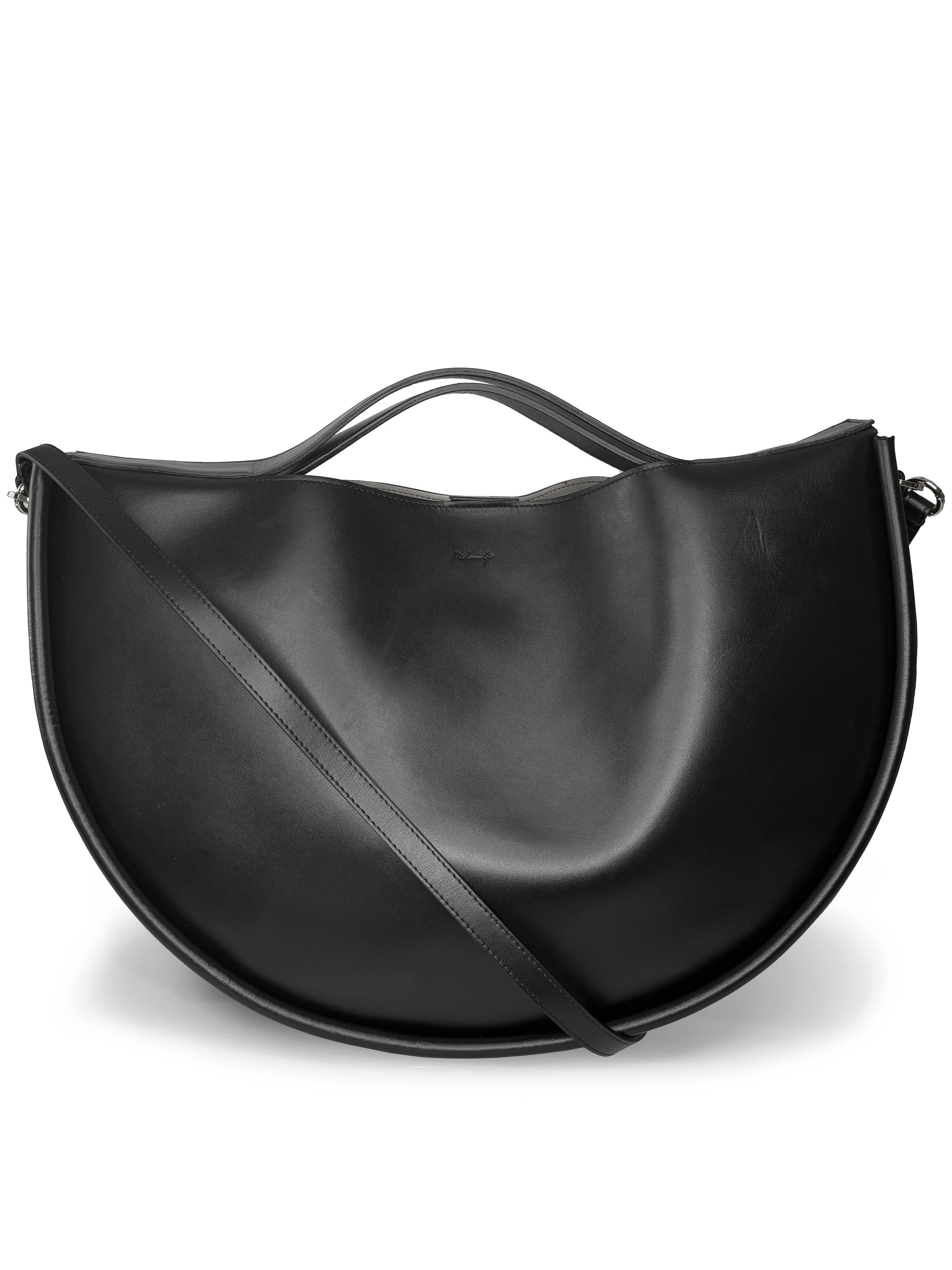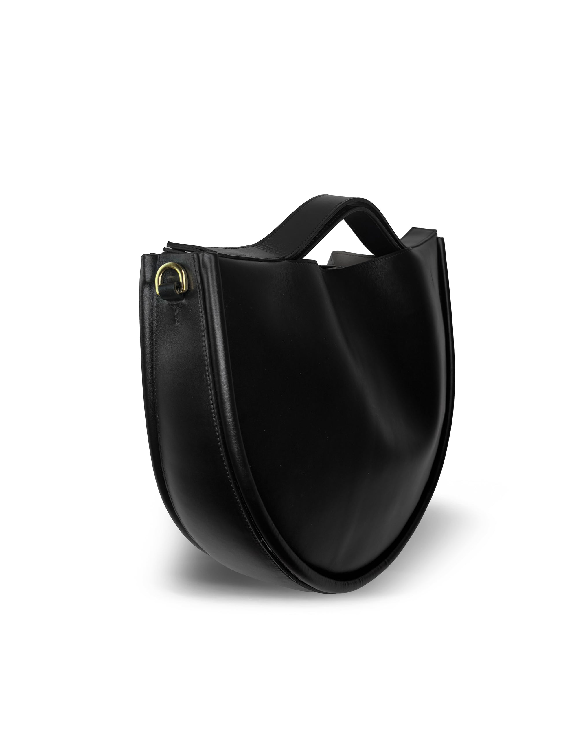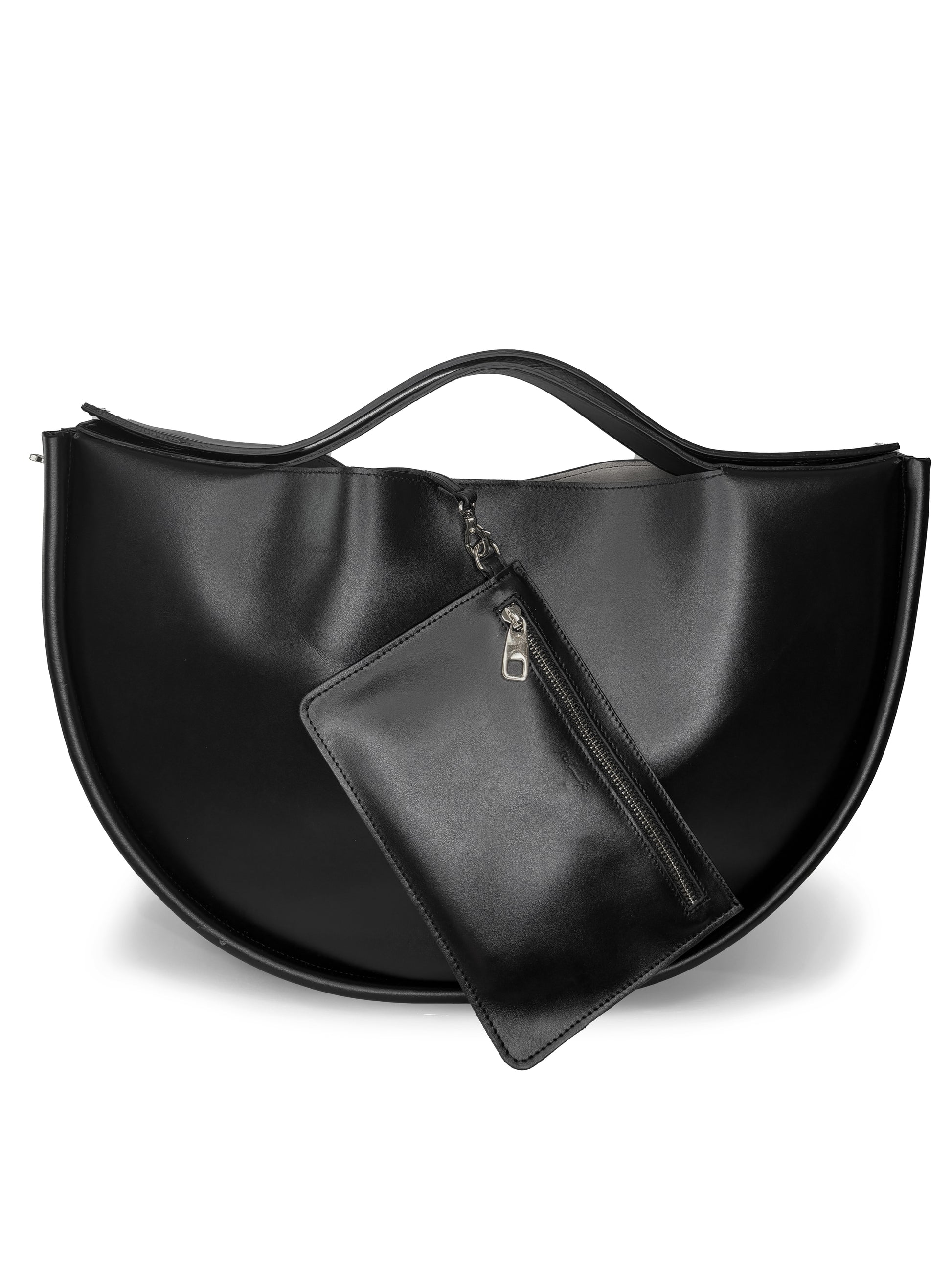 Egle è una borsa di grandi dimensioni dal carattere deciso. Ideale da portare a mano, esprime al meglio la sua forza scultorea in questa modalità.