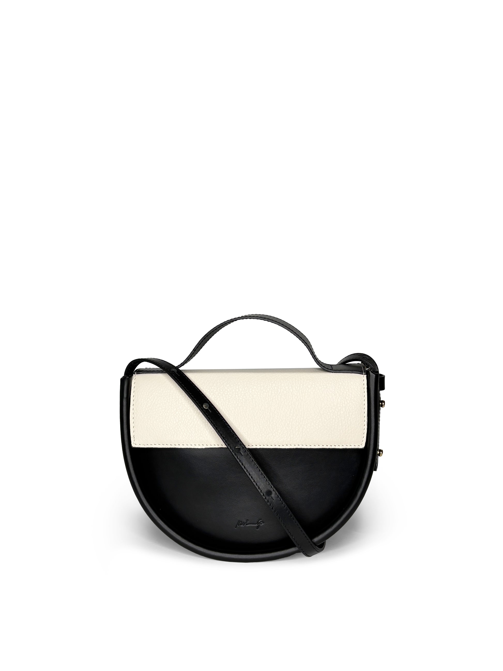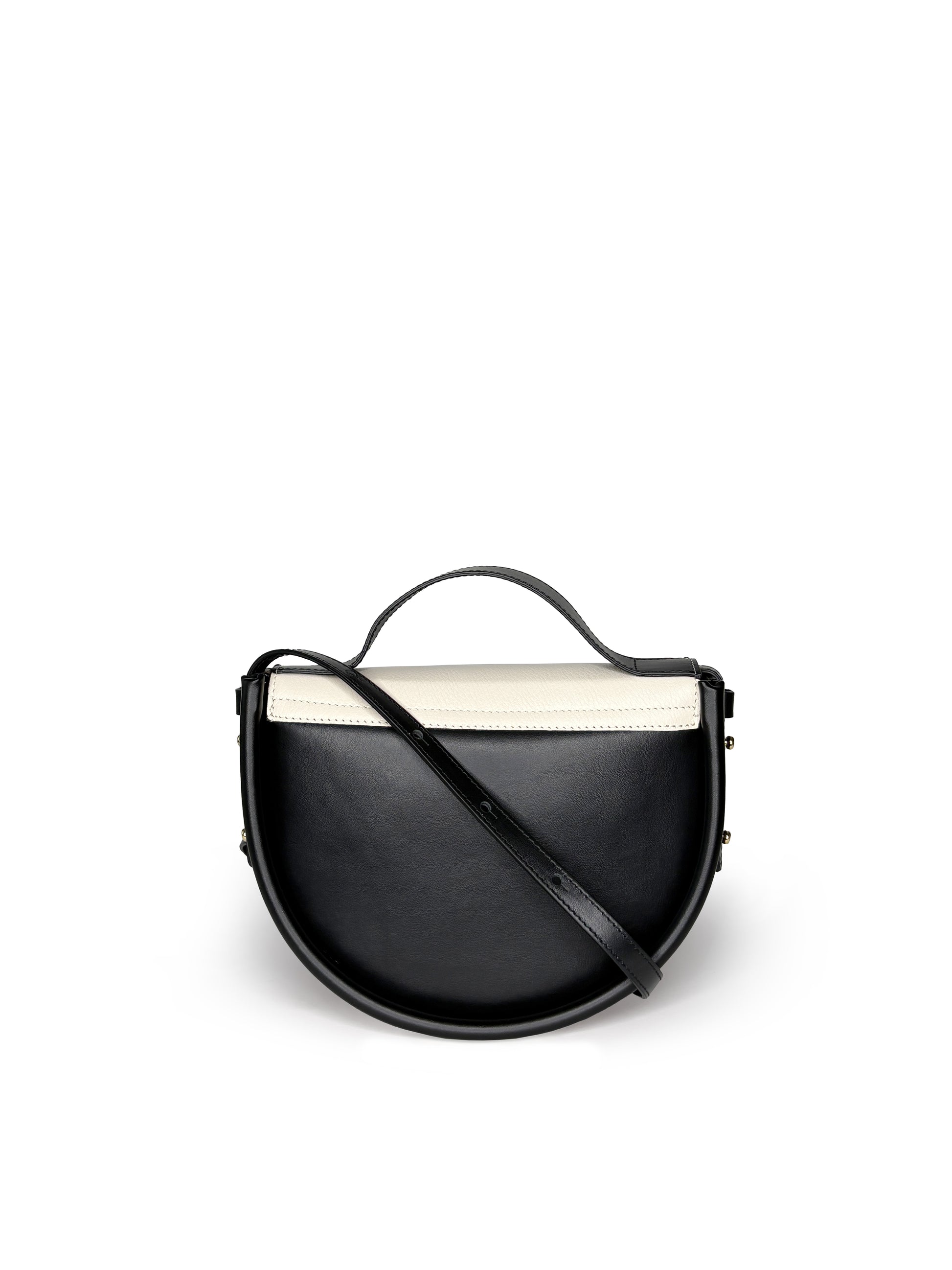 La tracolla regolabile, arricchita da dettagli sferici gemelli, aggiunge un segno distintivo al design pulito.